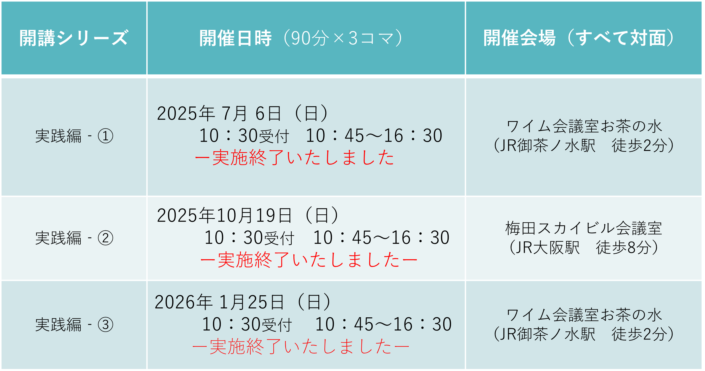 <2025年度:実践編 実施日程・会場>