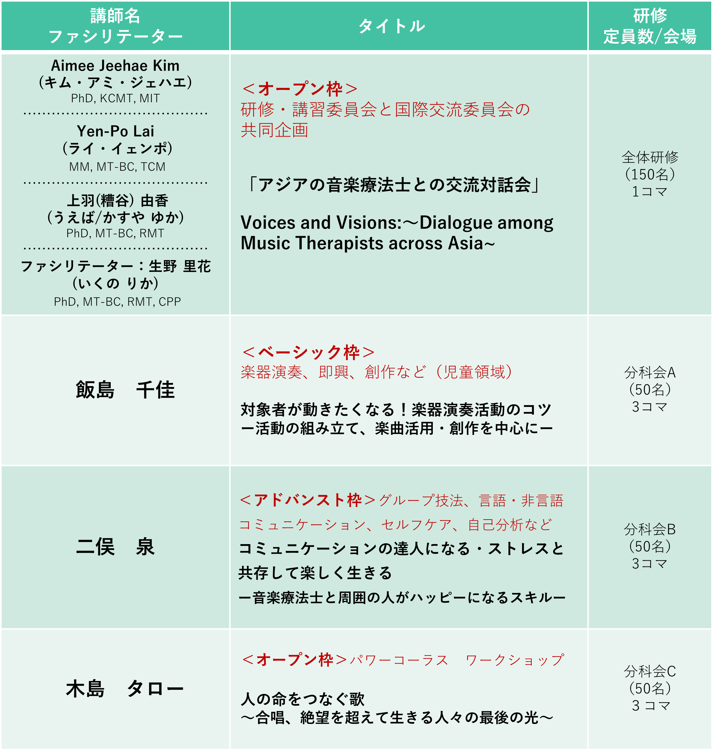 ➡全体研修 お申し込みはこちら(アジアの音楽療法士との交流対話会)
